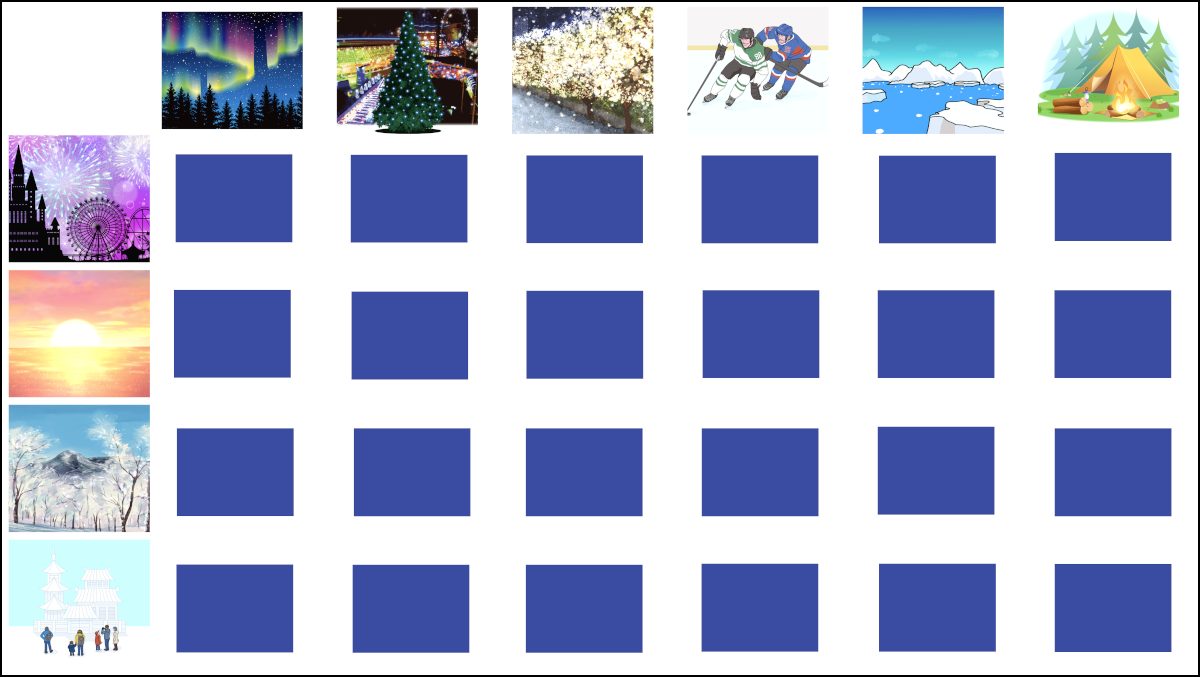 例えば、黒板に向かって一番左側のグループが負けているとします。工夫③のように、2枚を左側に置いて、そのイラストを答えになるようにするなどです。児童の様子を見ながら調整するとよいでしょう。