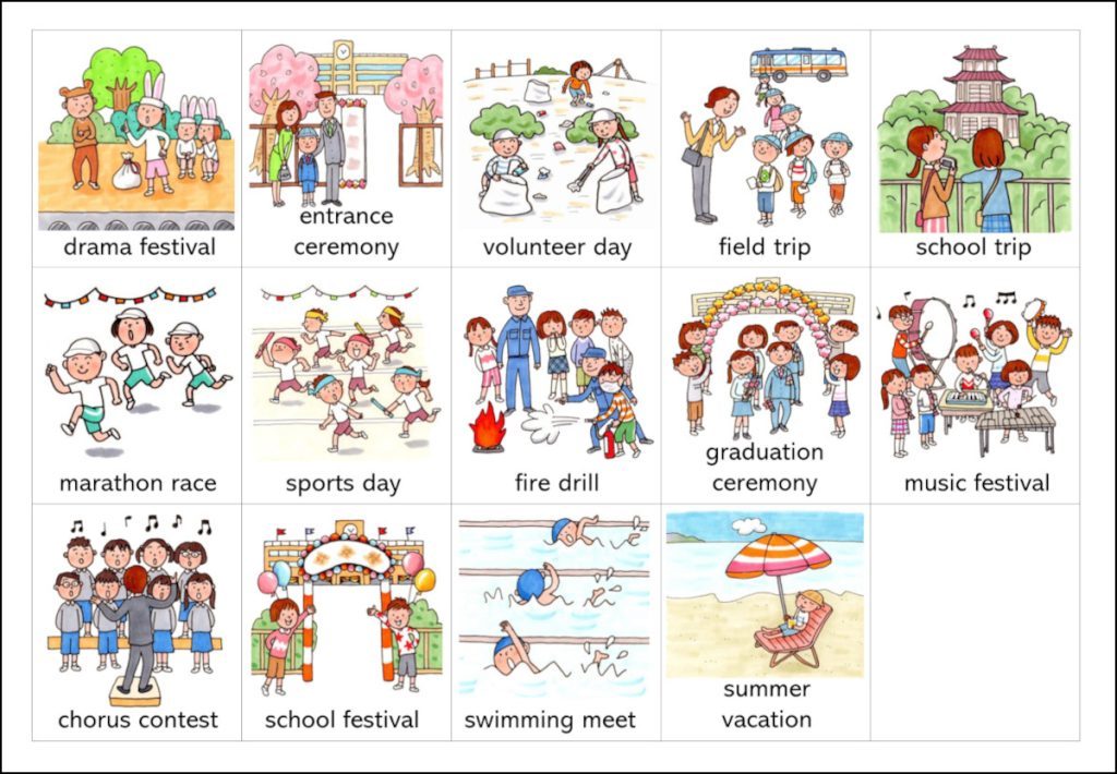この記事の最後で、パワーポイントのファイルをダウンロードできるようになっています。必要な教師の発話やイラスト、音源などを挿入してあり、この資料を使うことで1時間の授業を行うことができるように作成してあります。このスライドを活用して、クリックしながら授業を進めてみてください。![]()