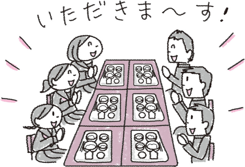 配膳から片付けまでの時間は学校・地域によって様々ですが、30 ~40 分程度であることが多いので、配膳を素早く行わないとゆっくり食事をすることができなくなります。あらかじめ給食当番の中でも、誰が何を取りに行き配膳をするのか、決めておくとスムーズです。
