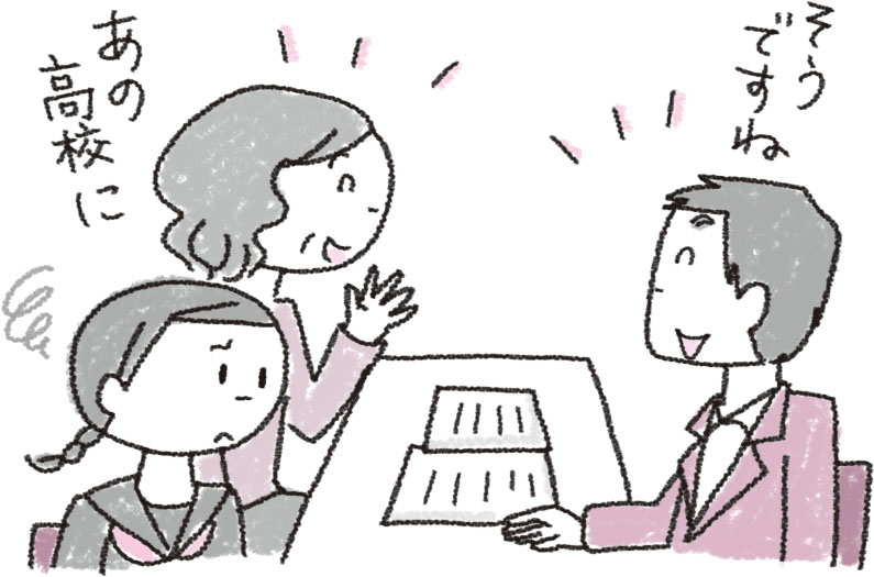 いくら机上で考えていても、「百聞は一見にしかず」です。高校などの説明会、見学会には積極的に参加させましょう。また、生徒同士だけではなく、保護者と行くようにもすすめます。