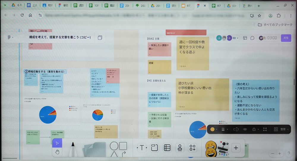 この単元ではスプレッドシート、フィグジャムのほかに、「単元名」「身に付けたい力」「提案書のサンプル」「学習進行表(提案書を書くためのステップ)」「推敲チェック表」などを掲載した学びの手引を配付。取り組むべきことを可視化することで、子供たちが困ったときや何に取り組むべきか迷ったときに、この手引を見れば自分で学習が進めることができるよう工夫されていました。