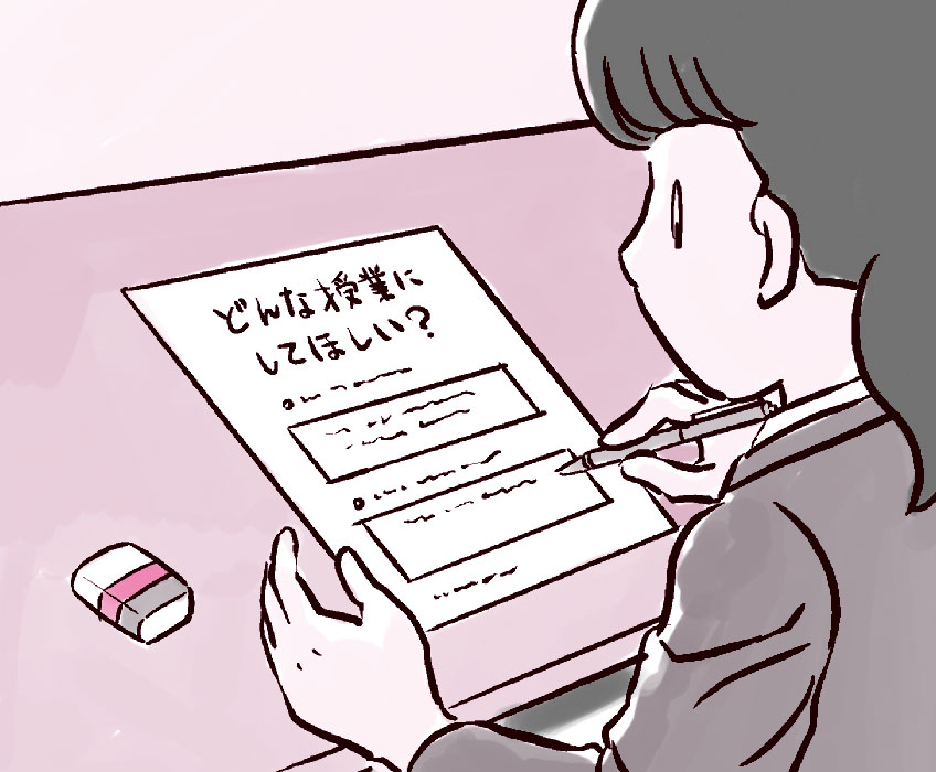生徒の意見を聞きながら授業を進めていこうとする姿勢を生徒に示します。生徒の現状や、授業に何を求めているかを知ることによって、学習者の視点に立った授業を工夫していきます。
