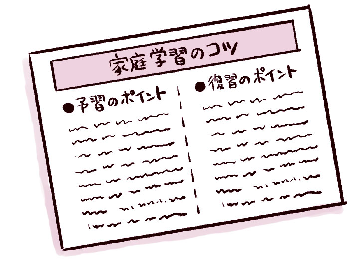 予習の必要性や、予習・復習のやり方などを具体的に示します。生徒に授業アンケートを取ると、「勉強方法が分からない」と答える生徒が結構いるものです。勉強への道筋をきちんと示し、それに従って勉強していけば大丈夫、という安心感を与えてあげましょう。