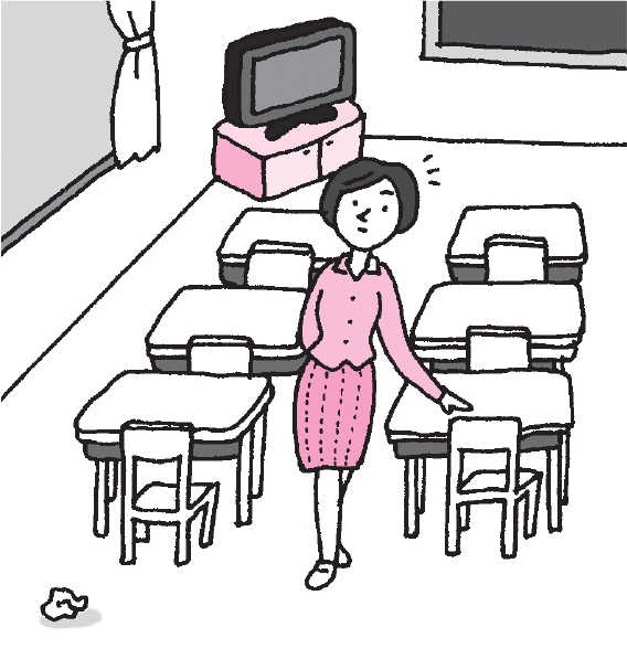 生徒によっては、かなり早くから登校しているケースもあります。もしかしたら、家にいたくないのかもしれません。また、昨日の帰りには異常がなかったはずの掲示物がいたずらされていたり、ゴミが落ちていたりすることも……。あわただしい中でなく、余裕をもって教室を眺めると、いろいろな問題点が発見できます。