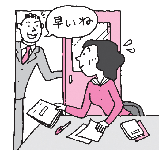 始業前・帰宅前のひとときは、その日の活動の準備と締めくくりの意味でとても重要です。とくに朝は少し早めの出勤を心がけて、余裕のある一日のスタートを切りたいものです。