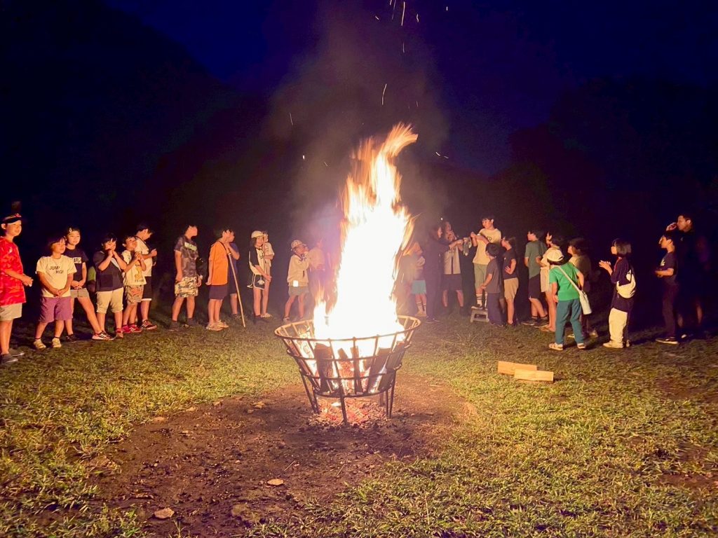 2日目の夜のクライマックスは、キャンプファイアです。燃え上がる炎を囲みながら、大人も子どもも歌い、踊り、心を一つにして盛り上がりました。