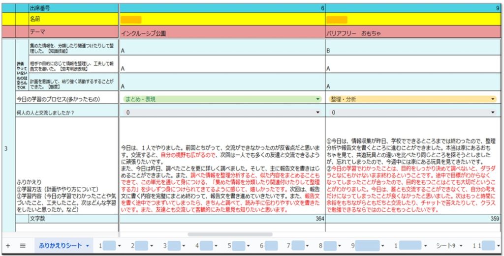 子供たちが自分のペースで学び進める授業では、目標も到達点も異なります。だからこそ、「自分の学びを整理して、次の行動につなげる」振り返りが欠かせません。振り返りは、ただ自分の学びを記録するのではなく、授業で取り組んだことや、うまくいったこと・つまづいたことを整理し、次の授業でどのように進めるかを考えるための時間です。