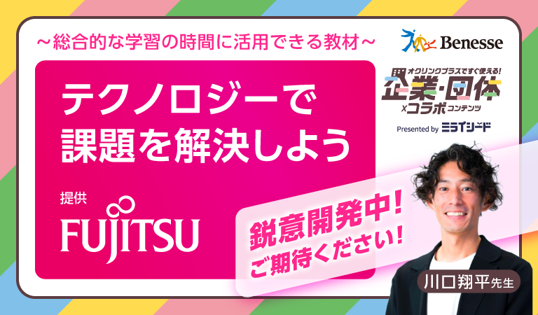 「教科書の学びと社会をつなぐ」ことをコンセプトに、子どもたちがより“自分ごと”として課題を捉え、探究できるようにという思いで生まれたベネッセコーポレーションの「企業・団体コラボコンテンツ」。企業・団体の取り組みを教材化し、ベネッセの小・中学校向けICTソフト「ミライシード」で活用いただける授業コンテンツとして提供しています。今回は、日本を代表するテクノロジー企業「富士通」とのコラボ教材(まもなくリリース予定)について、監修の川口先生のコメントもまじえながら先行公開します。