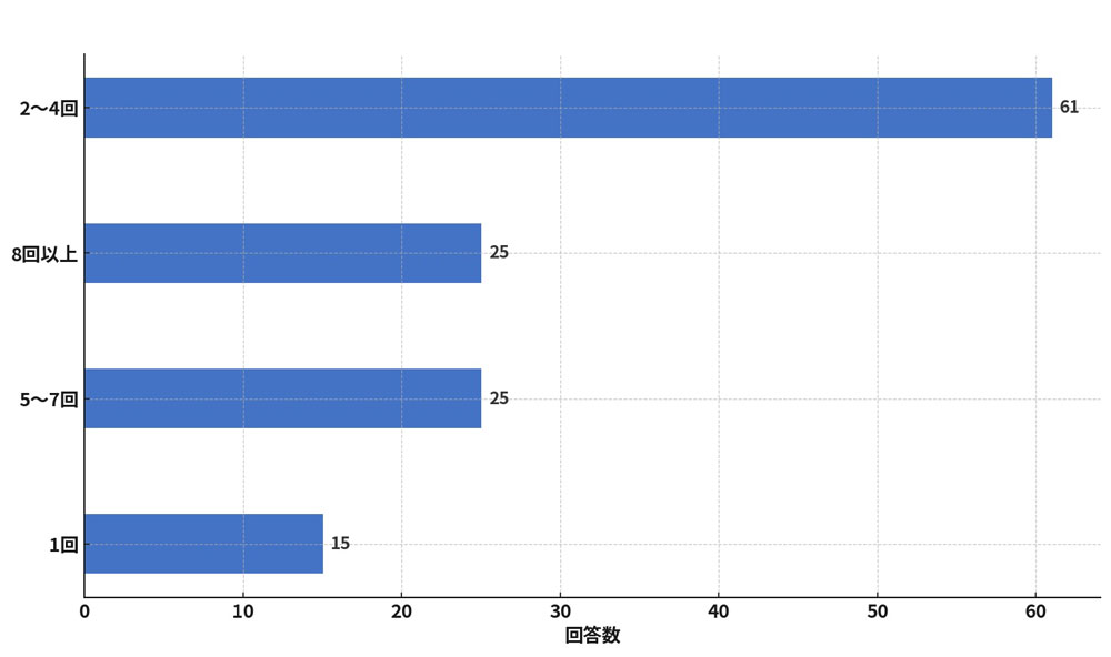 最も多いのが2~4回、約9割の先生が2回以上は卒業文集を制作