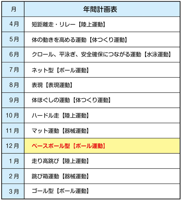 ベースボール型の運動に積極的に取り組み、ルールを守り助け合って運動をしたり、勝敗を受け入れたり、仲間の考えや取組を認めたり、場や用具の安全に気を配ったりすることができるようにする。