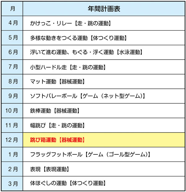 跳び箱運動は、回転したり、支持したりすることなどの技に挑戦し、その技ができる楽しさや喜びに触れることのできる運動です。