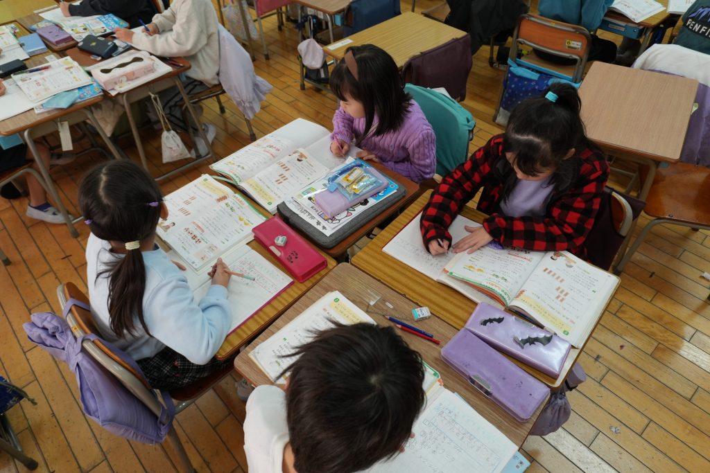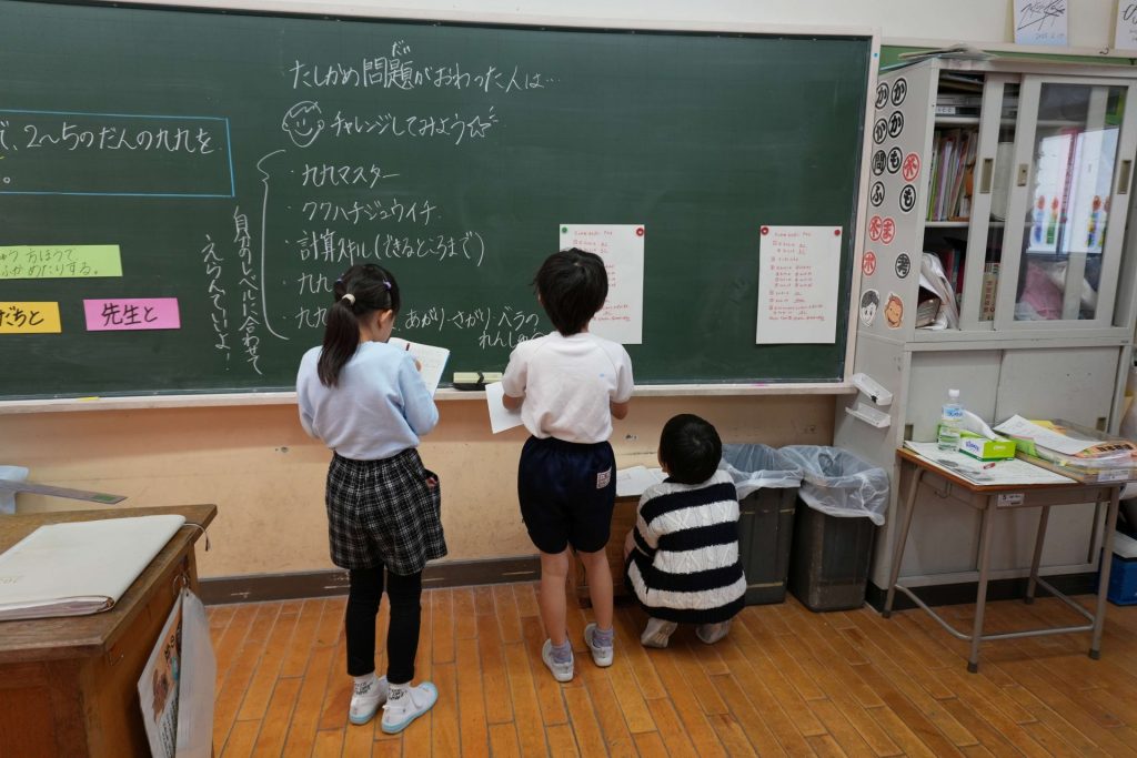 最初は多くの児童が「友達と」を選択しましたが、先生は「途中で変えてもいいよ」「いけると思ったら一人でやってみてもいいよ」とアドバイス。子供たちは机を合わせてグループで課題に取り組みつつ、次第に黙々と一人で取り組む姿も多く見られるようになりました。