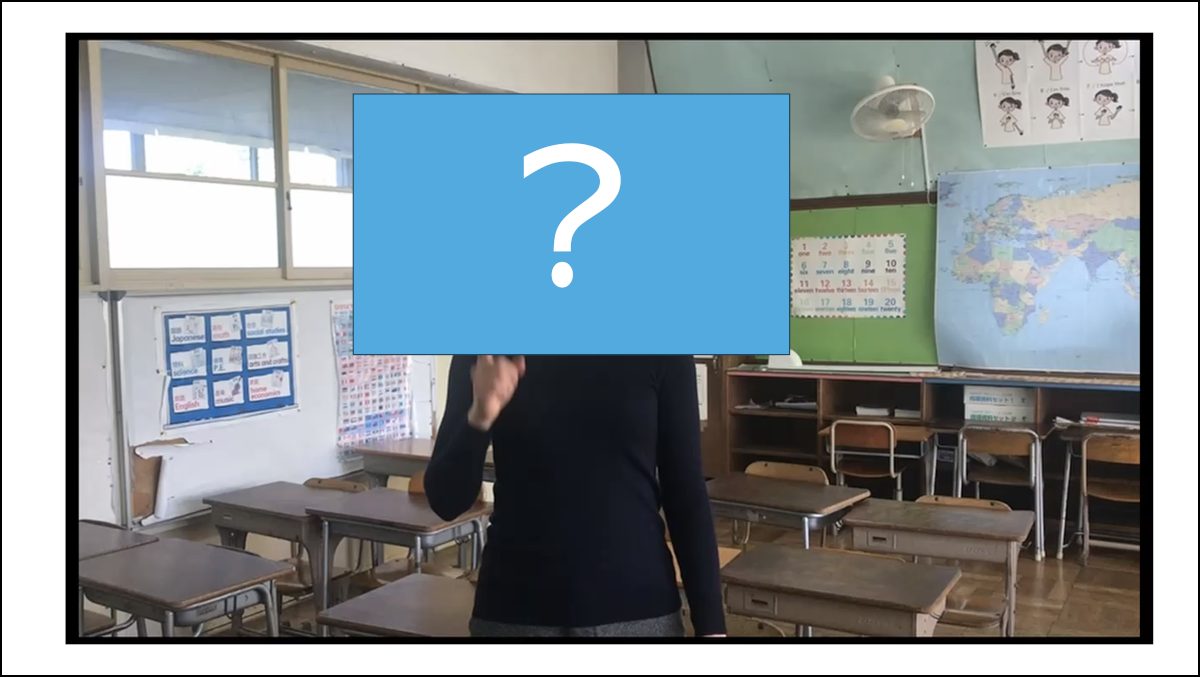 先生の顔が分からないように、顔のところを四角で隠しておきましょう。このちょっとした工夫だけでも、児童は先生たちの英語を聞こうとします。