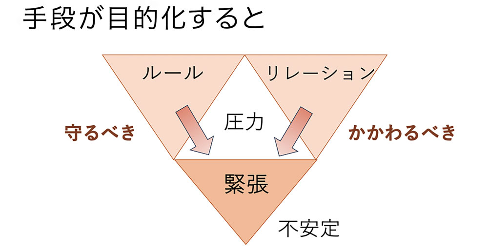 ところが、この「安心」は目に見えにくく、意識していないとすぐに背景へと押しやられてしまいます。そうなると、いつのまにか手段であるはずのルールや指導そのものが目的化しやすくなるのです。