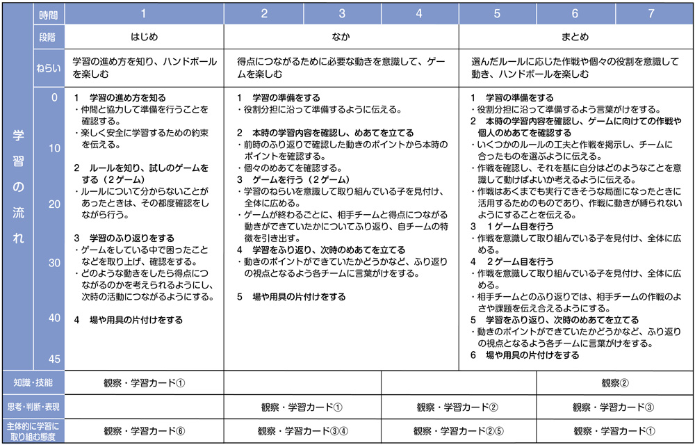 ①ハンドボールの行い方について、言ったり書いたりしている。