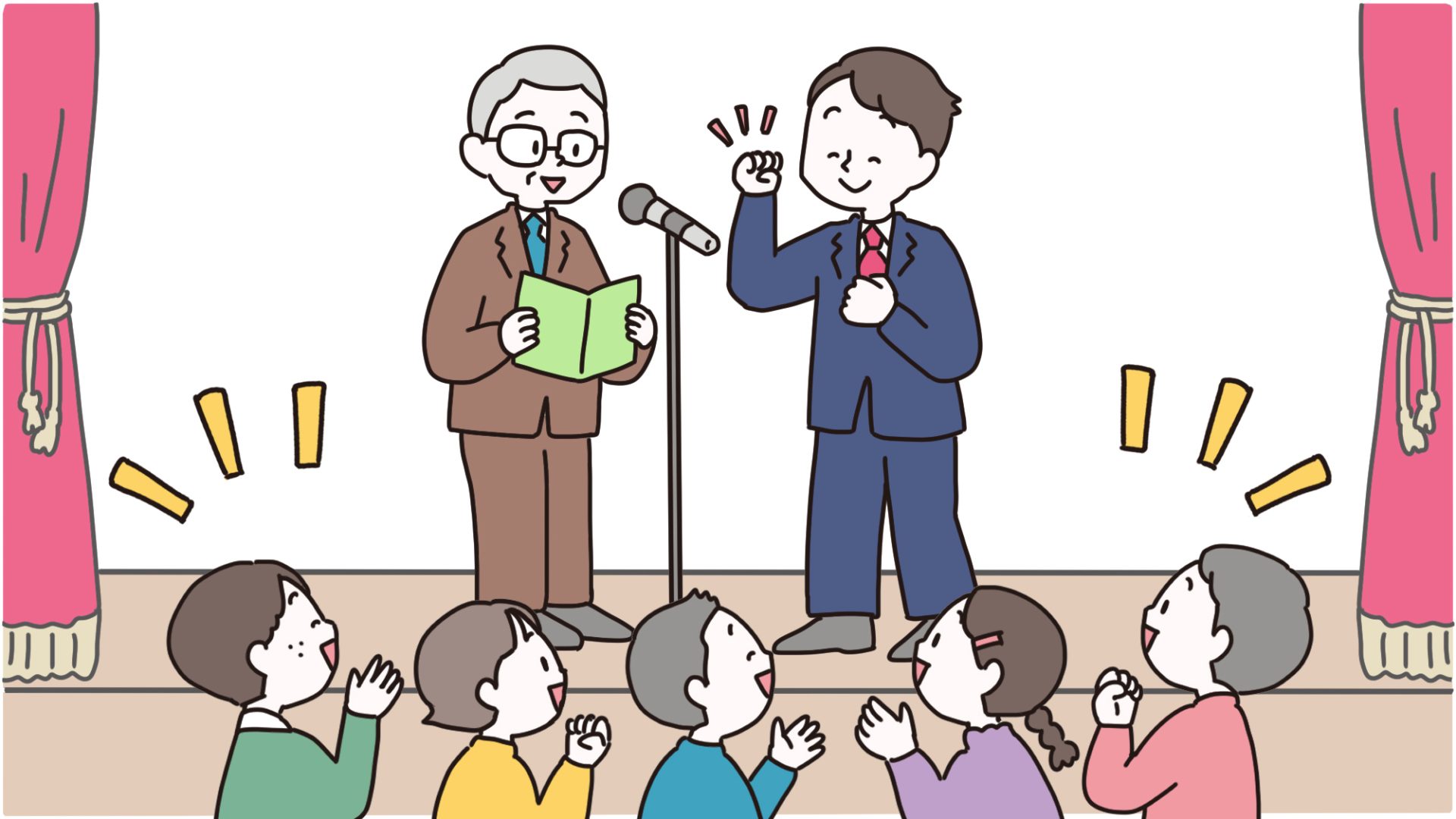 人事異動で来た先生、新しく採用された先生を、子どもたちに紹介します。校長先生から「新しく来られた〇〇先生です」と紹介され、簡単なあいさつをするのが一般的です。自分の名前、好きなものや趣味などの簡単な自己紹介、そして抱負を手短に話しましょう。 - 担任発表