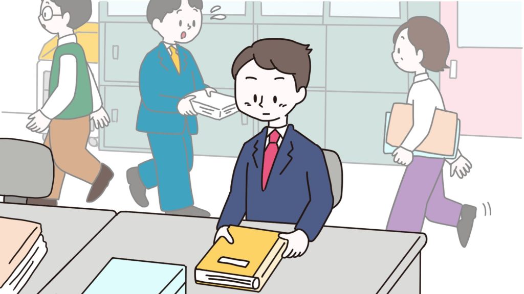 当日の朝は、職員室で待機します。周囲の先生方は、電話対応、配付物確認、打ち合わせであわただしく動いています。その様子を見て、焦るかもしれません。