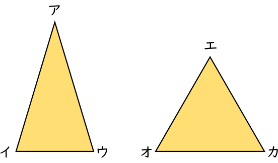 二等辺三角形は、2つの角の大きさが等しいです。