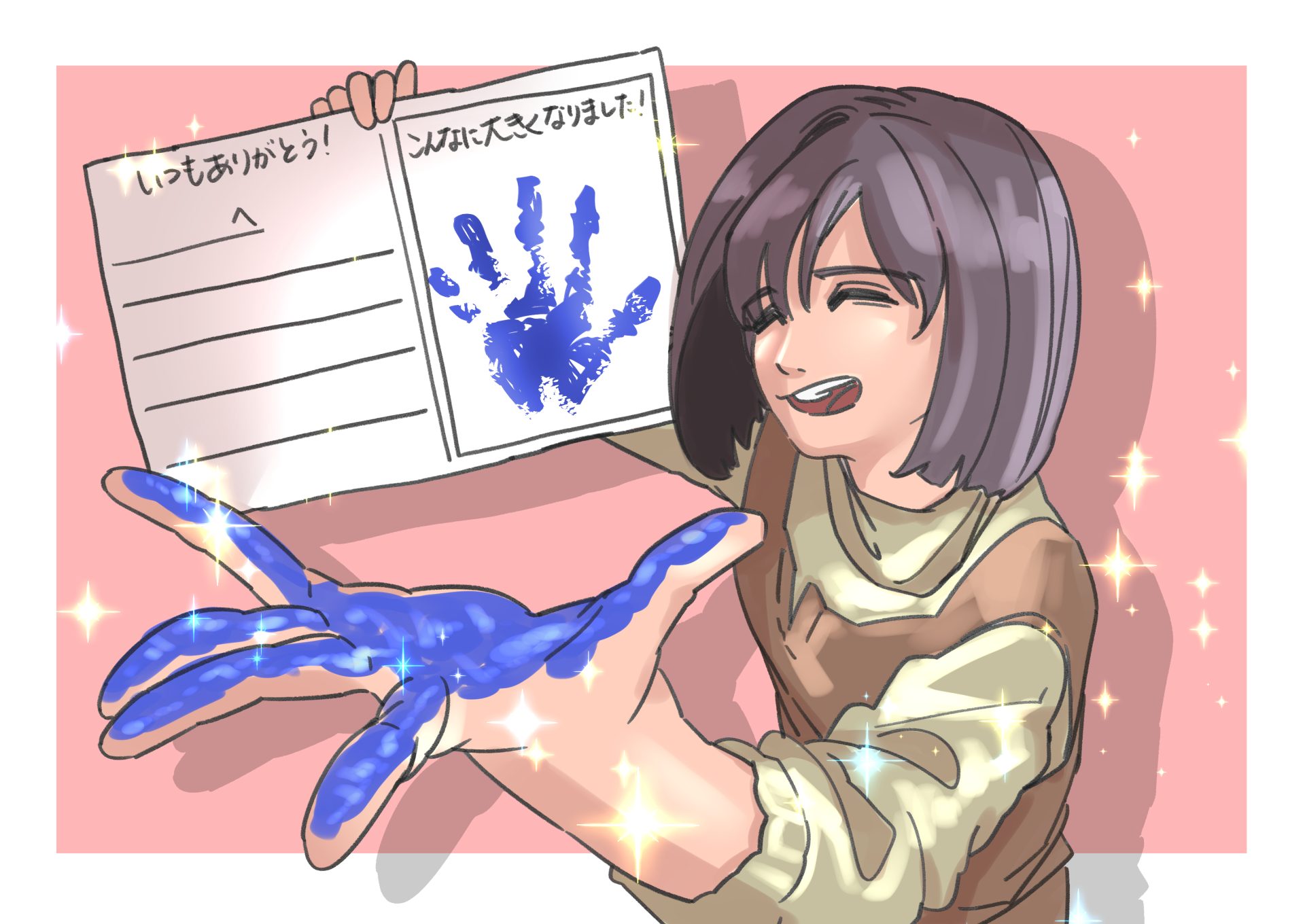 毎日心をこめて育ててくれたおうちの人に、感謝の言葉を贈ります。もちろん手紙のみの形式でもよいのですが、筆者は手形をつけることをオススメしています。誰よりもお世話になっているおうちの人へ、心もからだも成長したことを伝えられます。