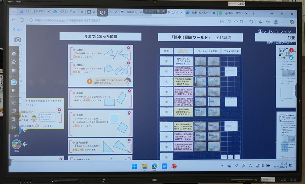 令和8年1月23日、杉並区立松ノ木小学校(笠原秀浩校長)の研究発表会が開催され、全学年で研究授業が公開されました。本記事では、5年算数「四角形や三角形の面積」における研究授業(大城真衣教諭)を紹介します。