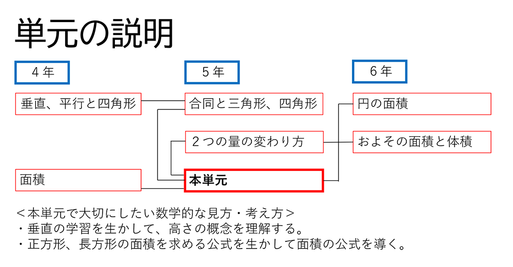 大城先生が単元を通して大切にしていたのは、既習とつなげて考えること、そして自分の考えを言葉や式、図で書き残すことです。こうした学びの積み重ねを通して、子供たちは「わかった」「自分で学びを深めることができた」という実感を伴いながら、理解を確かなものにしていきます。本記事では、子供たちが既習を手がかりに考え、自分の言葉で説明できるようになっていく過程を紹介します。