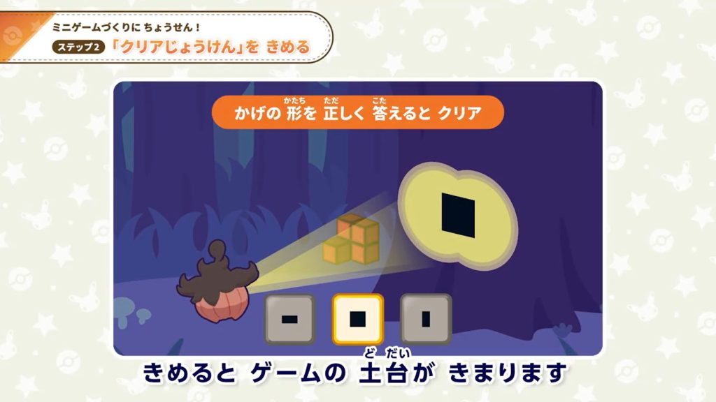 ①映像教材: 子どもたちの興味関心を引きつける映像教材が用意されています。株式会社ポケモンの『ポケモンフレンズ』制作者の視点から、ゲーム作りのヒントを学びます。