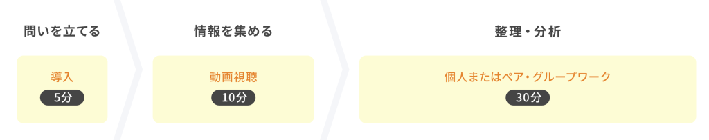 本プログラムは、45分×2コマでの実践を想定して設計されています。この時間の中で、プロの考え方に触れ、実際に自分たちで算数の要素を取り入れたゲームを企画・設計する探究のサイクルを体験します。