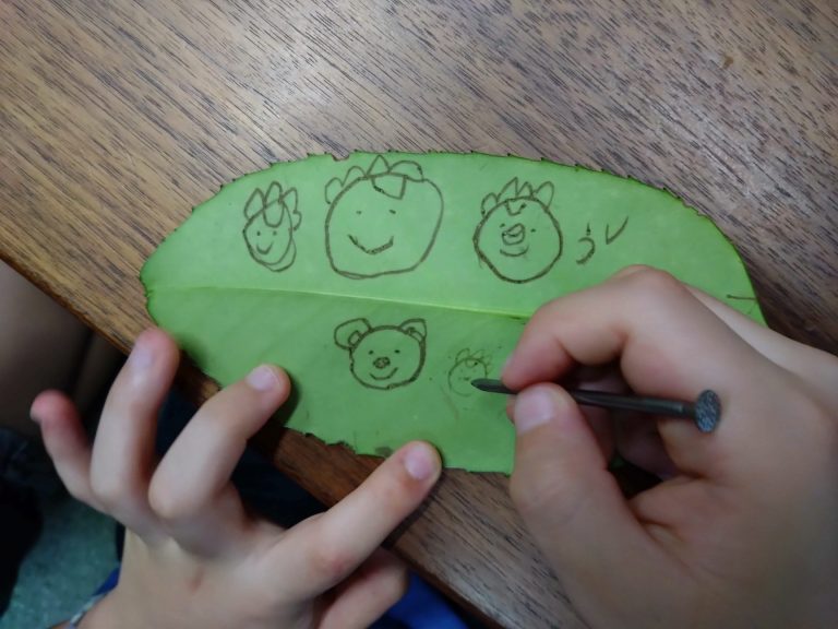 葉っぱに文字や絵がかける、タラヨウとアケビの葉で楽しい手書き体験をしてみよう!